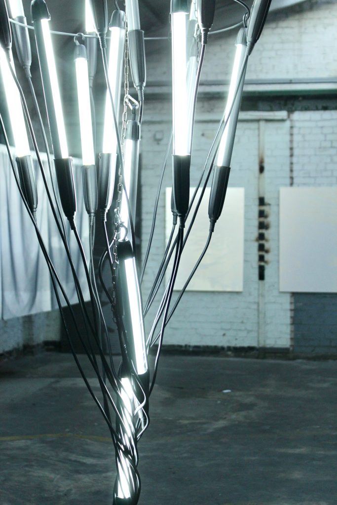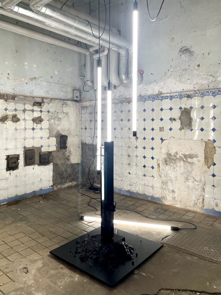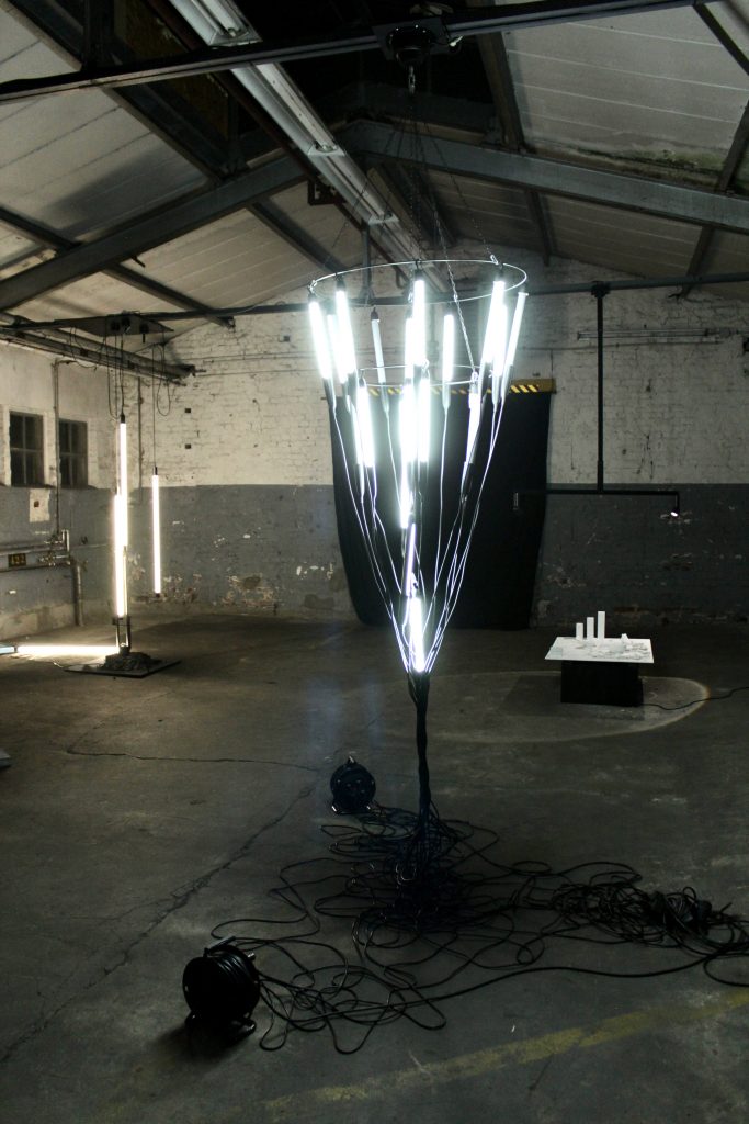 91R _ 2025. kinetic light installation. 80 x 80 x 340cm. xpon-art gallery, Hamburg.